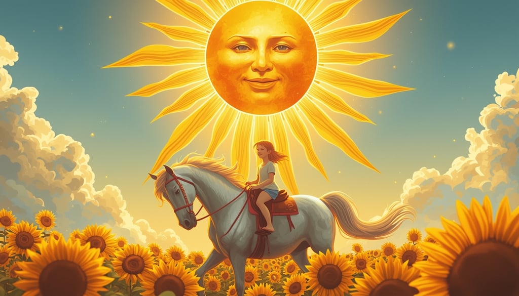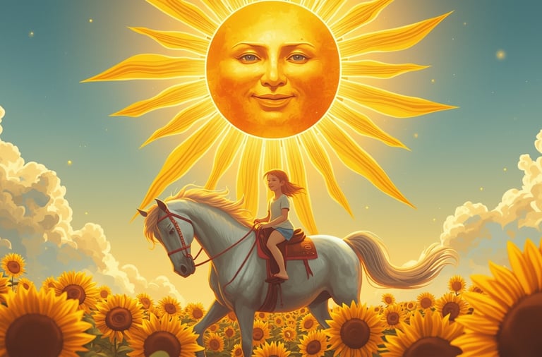 O Arcano do Sol nos mostra crianças brincando, a forma mais pura de alegria. Elas não se preocupam com o passado ou o futuro; elas simplesmente são no momento presente. O convite de hoje é para resgatar essa simplicidade. O Ritual da Saudação ao Sol é um ato de reconhecimento da luz que existe fora e dentro de nós. Honrar Apolo, o deus da luz e da música, é permitir-se criar e apreciar a beleza. Hoje, tome um suco de laranja. Coma uma comida que te conforte. Dance na sala. Ligue para um amigo que te faz rir. Pois o segredo do Sol não é uma fórmula complexa, mas uma verdade simples: a alegria é o combustível para todas as grandes conquistas.